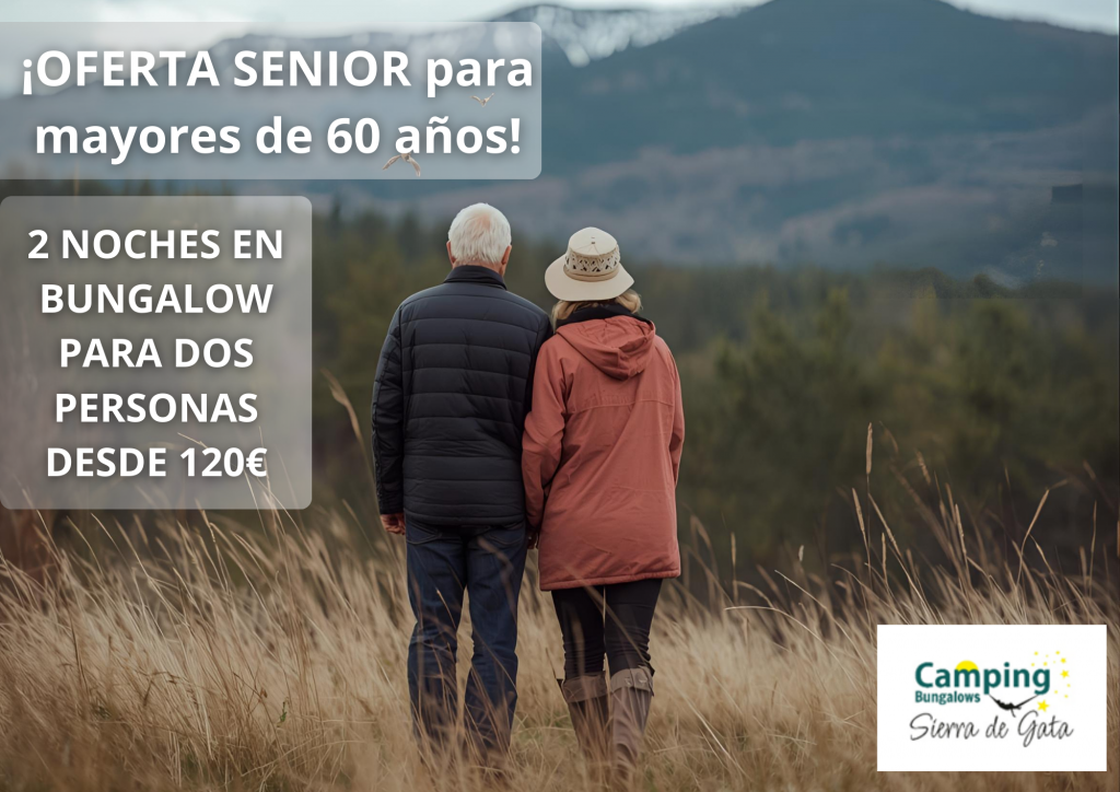 Mínimo de dos noches de alojamiento en el Bungalow Trevejo para dos personas mayores de 60 años al precio especial de 60€/noche.